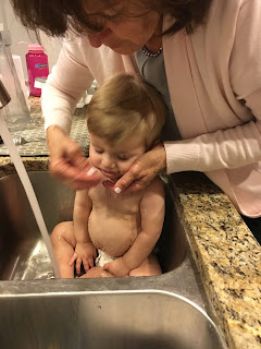 My mom gave him a quick sink bath afterward :)